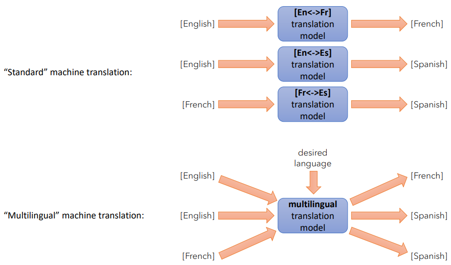 초반의 '번역' Task는 English:French, English:Spanish처럼 한 쌍의 pair를 통한 단일 언어 번역의 형태였다.