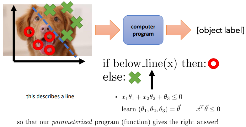 $\theta$를 조절하는 것을 통해 강아지라고 예측하는 것이다.