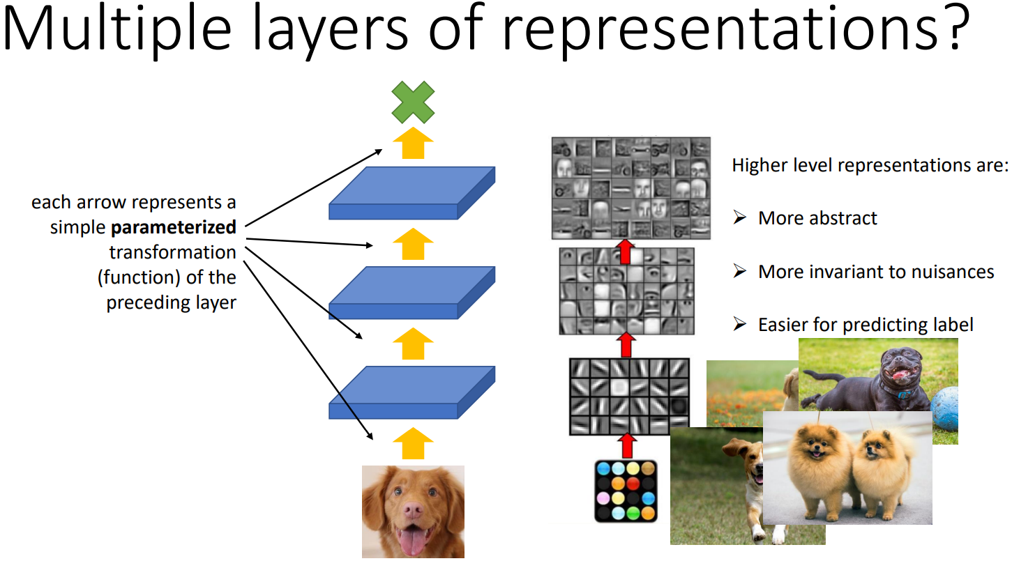 Deep learning의 경우, x를 '표현'하기 위해 Layer를 통해 추상화된다고 생각할 수 있다.