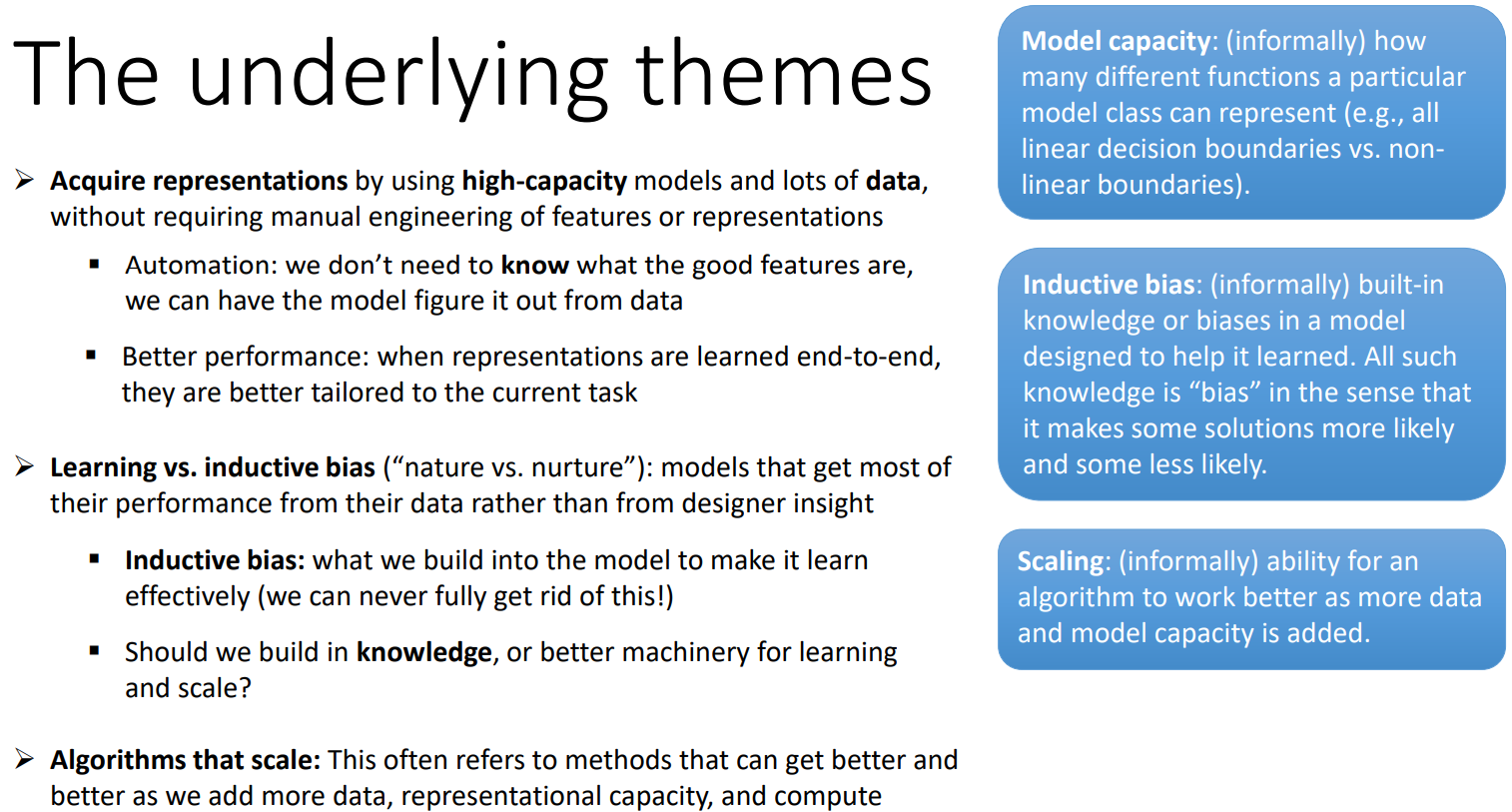 2. 학습 대 귀납적 편향(nature vs nurture): 대부분의 성능을 디자이너의 인사이트가 아닌 데이터에서 대부분의 성능을 얻는 모델